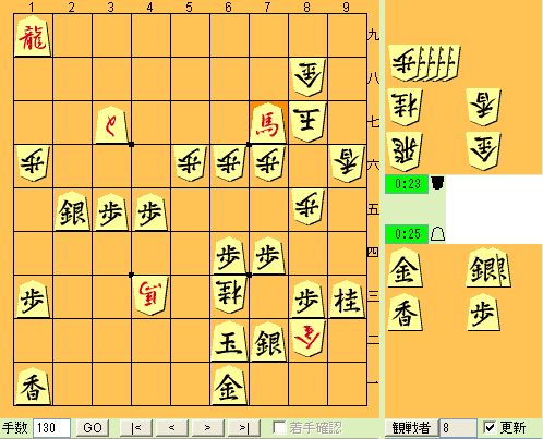 素人の私からの目ですが、この将棋上図の最後8八金のところは、後手が持ち駒も現在香しかないことを考えると馬の道をとめる手の方が良かったのではと・・・。