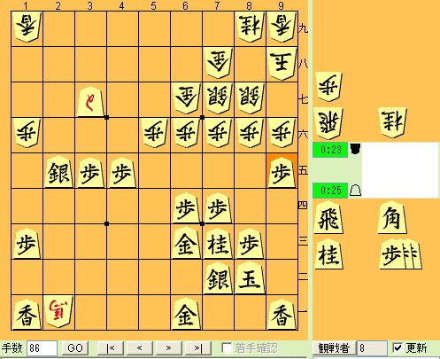 無料オンラインゲーム 将棋倶楽部24 有段者の将棋観戦から。