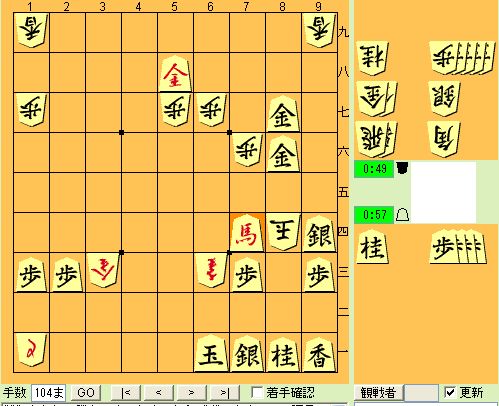 9五角と打ってしまい、9六玉に大慌て(汗)