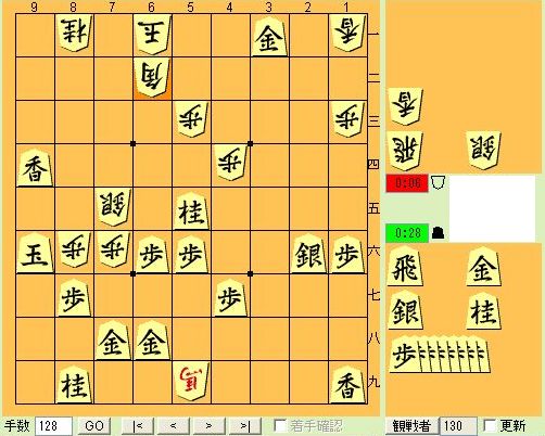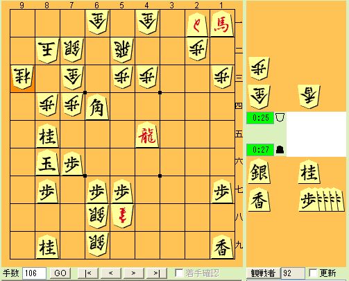 無料オンラインゲーム 将棋倶楽部24 有段者の将棋観戦からです。