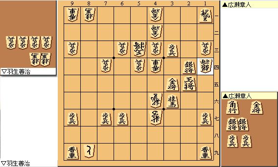 私の記憶が確かなら、確か昨年の王位タイトル挑戦者決定戦でこの二名が戦った将棋も相穴熊だったと思います。そのときは広瀬王位が勝利して挑戦者となり、初のタイトルホルダーとなったわけですが。